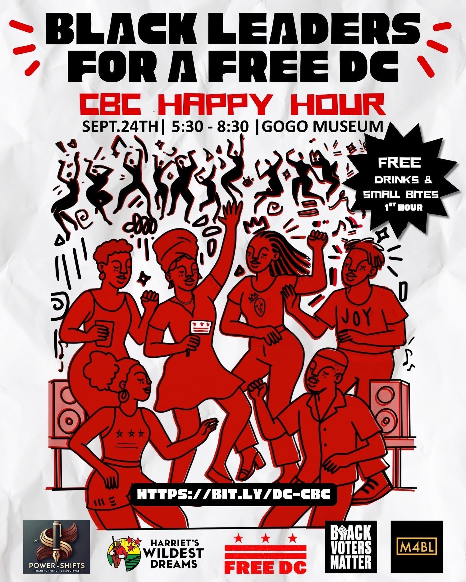 Join the Free DC Chocolate City Constituency Group for our CBC Happy Hour on Wednesday, Sept. 24th, 5:30–8:30 PM at the GoGo Museum.