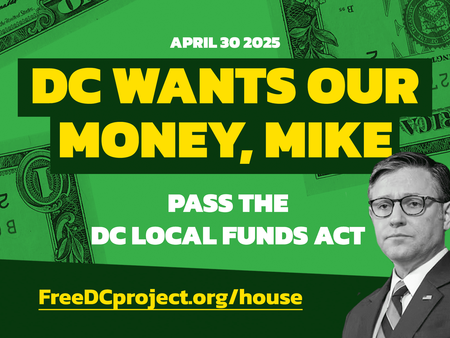 We demand immediate passage of the DC Local Funds Act (S. 1077) — no riders, no excuses. Send a letter to Speaker Johnson to add your voice to this demand.