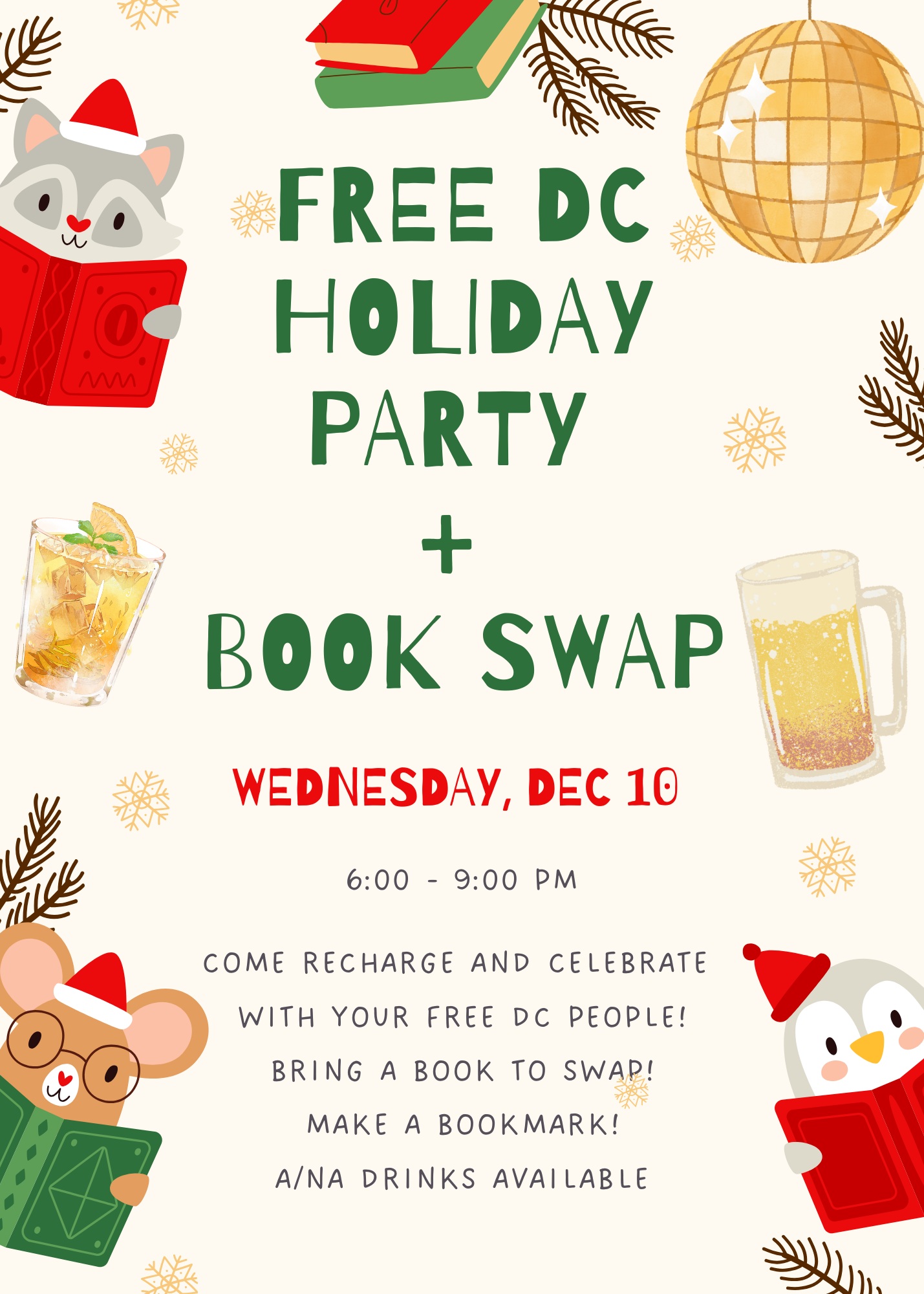 Everyone who has been involved in Free DC’s teams this year is invited to celebrate the season at a holiday party and book swap!