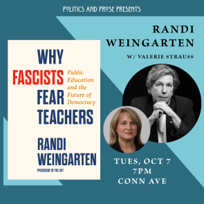 Weingarten will be in conversation with Valerie Strauss, an education writer. She wrote at The Washington Post on local and national education for 30 years and authored The Answer Sheet blog, which chronicled the most vital issues in the world of education. Strauss started at the Post as assistant foreign editor for Asia after stints at Reuters serving as national security editor, and at United Press International as assistant foreign editor and reporter. She was also an editor at the Los Angeles Times. Born and raised in Miami (when it was believed being excessively exposed to sun was good for you), she lives in Washington D.C. with her husband, Marc, an attorney. They have two daughters.