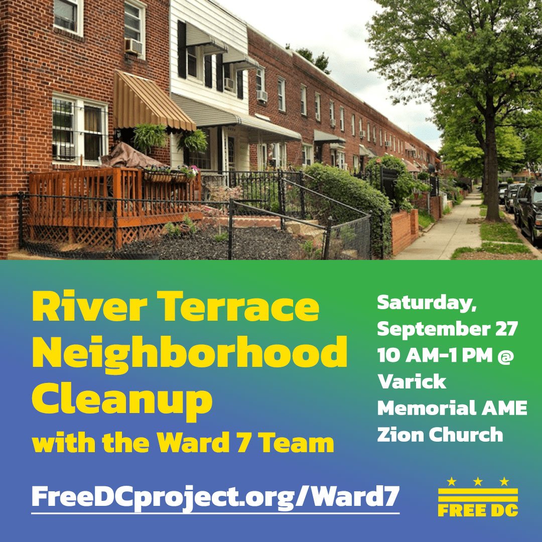 Join Free DC’s Ward 7 Team and the River Terrace Community Organization for a neighborhood cleanup in River Terrace and nearby Anacostia Park.