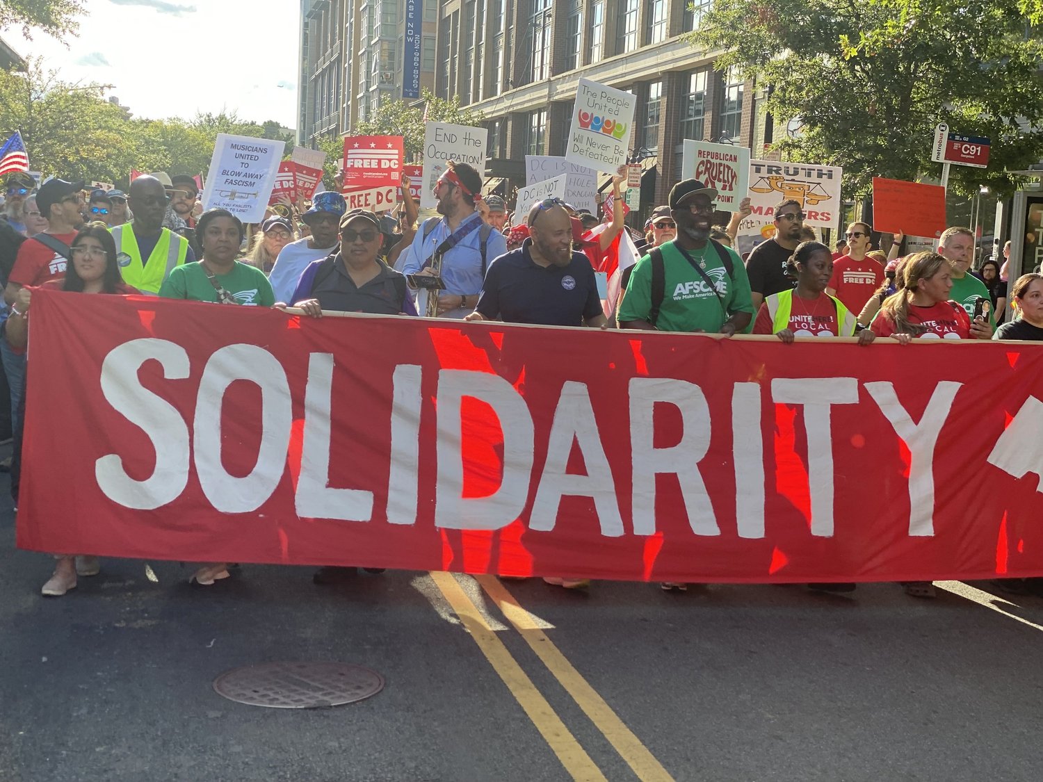 On August 28th, Free DC together with more than a dozen unions and hundreds of allies marched in solidarity against mass firings, union busting, deportation, and occupation.