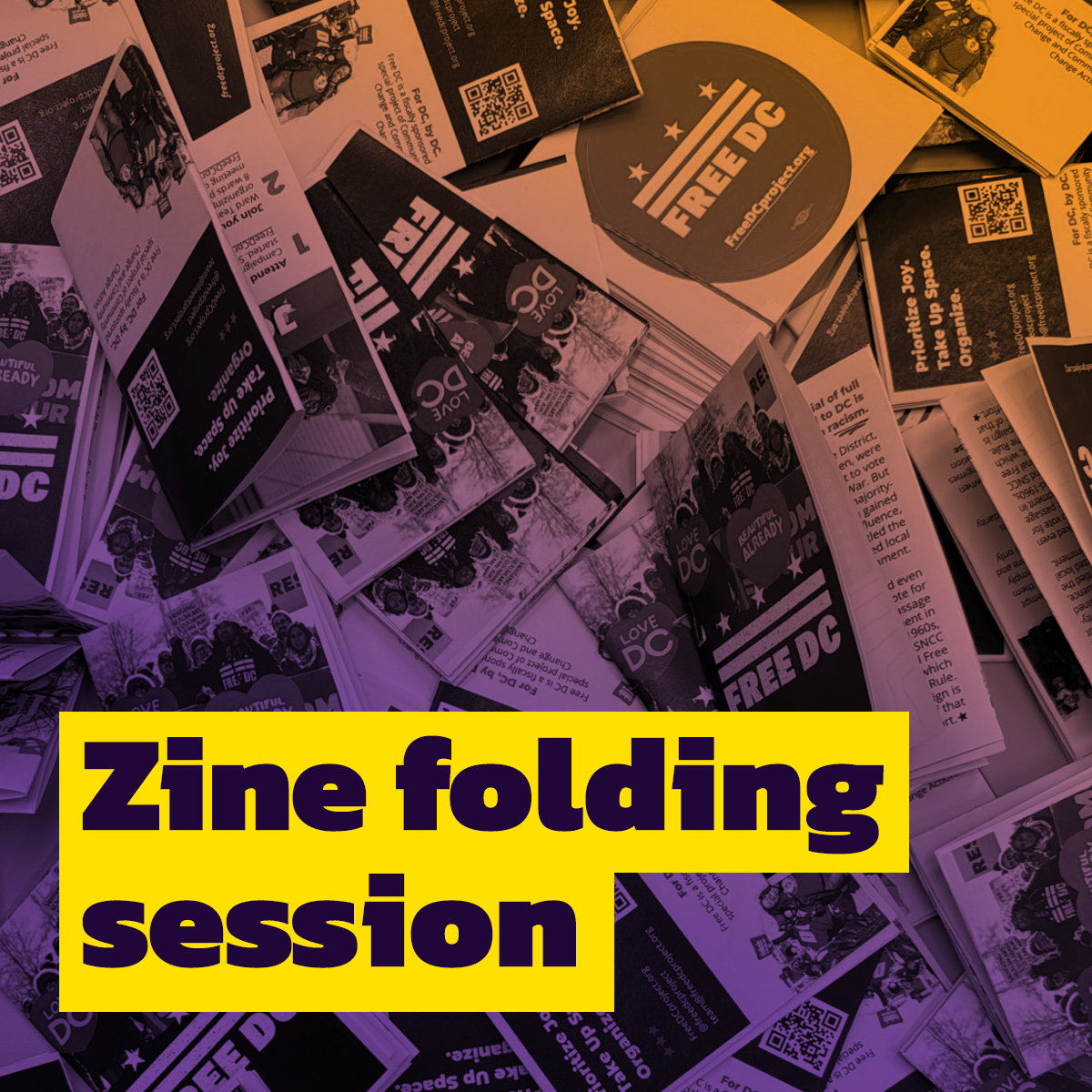 Join Free DC’s Tabling Working Group to for an easy and fun evening of folding zines together. Get a chance to hang with fellow Free DC members and supply all our outreach throughout Pride, Juneteenth, and more!