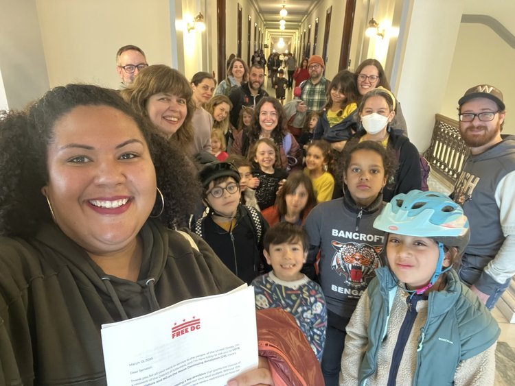 On March 10, 2025, the House of Representatives introduced a Continuing Resolution that would remove DC’s power over our local budget. Free DC showed up every day for a week together with union members, DCPS students, and thousands of neighbors to protect DC’s ability to control our own local budget.